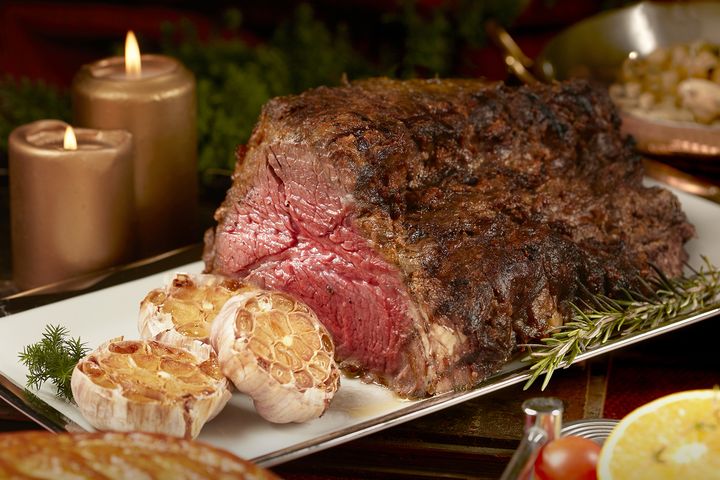 「香烤火雞繽紛共享組」4,800元,4公斤的火雞填入蔬菜餡料,以數十種義式香料調味烘烤,烘烤期間不時以瀝出的油脂澆淋火雞外層,直到外皮烤至金黃酥脆。「果木燻烤美國牛肉溫馨組」3,800元,特選2公斤美國肋眼牛肉,抹上義大利香料、黃芥末、匈牙利紅椒粉等醃製入味,先以低溫烘烤保留甜美肉汁,再轉為高溫烤出焦香酥脆外層,豐腴鮮嫩的粉紅色澤帶著軟嫩筋膜的口感,佐搭松露培根炒洋芋以及馬德拉紅酒醬、辣根醬、黃芥末等三款醬汁,為美味時節加分。