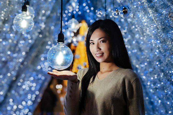 最後就是同樣位在站前廣場燈區的「浮冰小屋」,這裡一樣建議使用手機的人像拍照模式,以特寫方式讓背景呈現散景,輕捧燈泡球,就是非常神級網美的一張照片;除此之外,「浮冰小屋」的屋簷也是一處能拍出特殊照片的點位,在平日人潮相對沒那麼洶湧、不會影響到其他遊客動線時,可以借用裝置燈牌的光源作為打光,讓模特兒輕靠屋簷,拍出來的照片也十分唯美。
