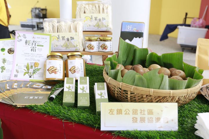 ▲左鎮公館社區帶來一系列有機好物,包含紅薑黃粉、葛鬱金麵與保養品等。 圖:西拉雅國家風景區管理處/提供