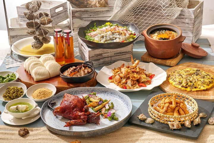 日前在發表會中,特別針對「澎湖海鮮饗宴」的蓬萊邨布袋雞、蚵仔酸瓜麵線煎做現場示範。以傳統手路菜為題,「蓬萊邨布袋雞」將澎湖古早味花菜干、醃菜及狗母魚丸融入布袋雞中重新演繹。「蚵仔酸瓜麵線煎」以澎湖麵線為基底,將鮮蚵與澎湖獨有的酸瓜,層次堆疊在,成為口感豐富的蚵仔酸瓜麵線煎。