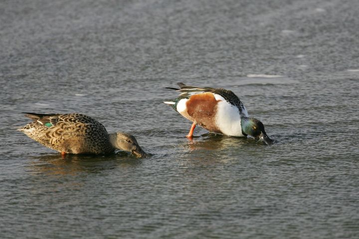 ▲攪動水面濾食的琵嘴鴨。 圖:農業部林業及自然保育署嘉義分署/提供