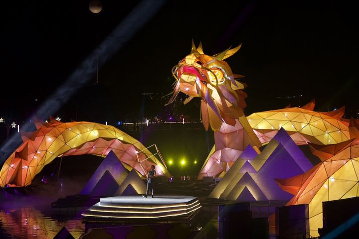 ▲台中龍賀-主燈搭配狂夢藝術發光立方體演出。 圖:臺中市政府觀光旅遊局/提供