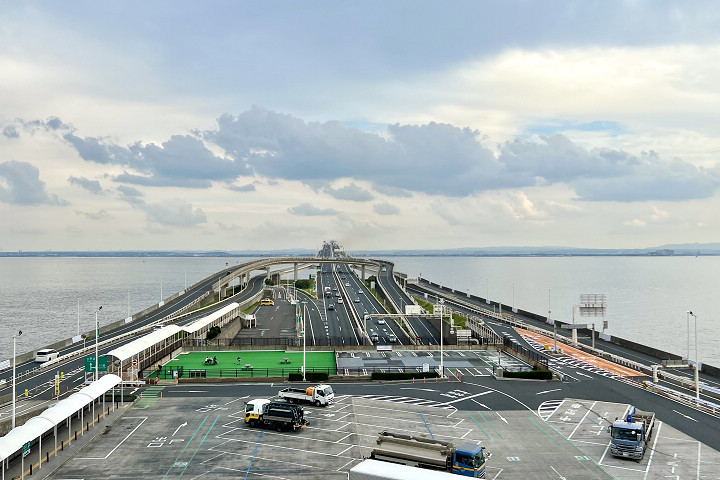 位於連接神奈川縣與千葉縣「東京灣跨海公路」之間的「海螢」,是世界上唯一的海上道路休息站,到了夜間在燈火的點綴下,彷彿漂浮於東京灣上的螢火蟲。休息站共分為5層樓,設置了展望台、土產店、美食街、足湯等設施,儼然就像是個小型觀光景點,每年吸引約700萬人造訪。這裡不僅能享受東京灣360度環繞的逛街、吃飯樂趣外,天氣晴朗時,還能遠眺富士山、東京鐵塔及東京晴空塔!