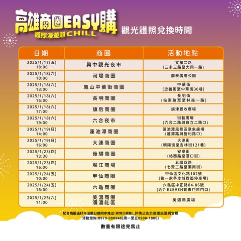 ▲觀光護照兌換的時間及地點-1。 圖:高雄市政府觀光局/提供