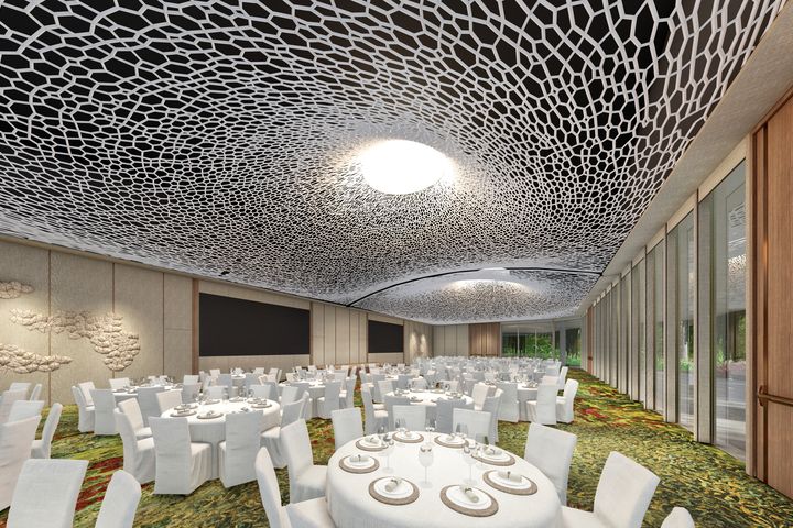 度假村內可容納300人的「Meranti 宴會廳」以森林地表的神秘神話為靈感,為重要慶典、商務會議和大型活動提供了理想場所。其核心設計源自稀有的「新娘面紗鬼筆菌」- 一種生長於熱帶環境中的獨特蘑菇,以其迷人的六角形面紗狀結構而聞名。這一獨特的設計引發人們對真菌世界的奧妙和圍繞這些神秘生物的民間故事的討論。毗鄰 Meranti 宴會廳的新娘房,幾步之遙連接婚禮派對現場等主要活動空間,讓準備工作變得輕鬆的同時又保有私人空間。