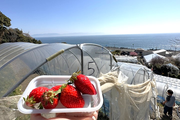 ✔ 陽光充足:草莓園位於久能山南側的緩坡上,面向駿河灣,沒有太多遮蔽物,可以充分吸收日照,讓草莓自然成熟。