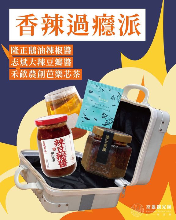▲「香辣過癮派」內含隆正鵝油辣椒醬、志斌辣豆瓣醬與禾畝農創芭樂芯茶,辣得美味又健康。 圖:茂林國家風景區管理處/提供
